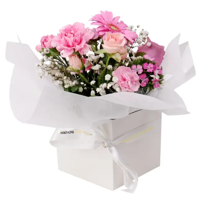 An excellent example of this is the Florist Choice Mini Box from Flowers Across Brisbane. Tailored just for you, this thoughtfully curated arrangement features a blend of fresh, seasonal flowers handpicked by our expert florists. Filled with vibrant and colourful blooms, this arrangement is perfect for bringing a joyful energy to any space. A great option for taking the stress out of gift-giving, this mini box can be delivered on the same day anywhere across Brisbane if ordered before 2 pm.
