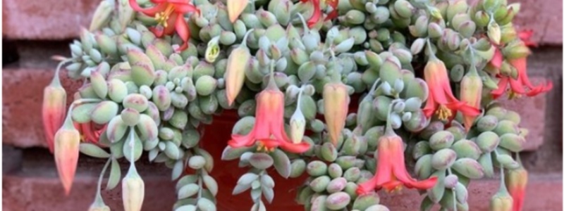 What’s interesting about this plant is its red and pink bell-shaped flowers. They gracefully hang down from the ends of the Cotyledon pendens’ stems.