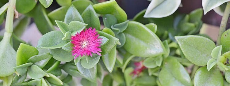 When you cultivate the ice plant, expect its succulent stems to sprawl and spread outside your hanging pot or basket. Even so, you’ll love the ethereal appeal that its chunky stems give off.