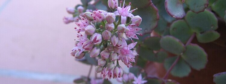 When exposed to the sun, the edges turn purple. This succulent plant also produces cream and pink flowers.