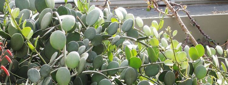 The jade necklace’s stems can grow as long as a foot, allowing them to trail beautifully out of a hanging pot or basket. As these stems cascade, they eventually rise up which gives them a snake-like appearance. So, it’s not surprising why the plant is also referred to as the “worm plant”.