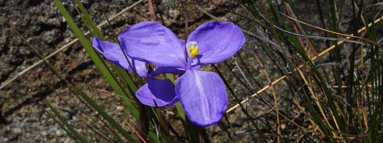 One of the secrets to the resilience and hardiness of Silky Purple Flags is that they grow from rhizomes, which are stems that continuously grow underground. Rhizomes enable plants to survive unfavourable seasons, which is why Silky Purple Flags are known for growing abundantly in fire-prone areas since they easily regenerate afterwards. As a result, Patersonia sericeas play a crucial ecological role in fire-prone ecosystems.