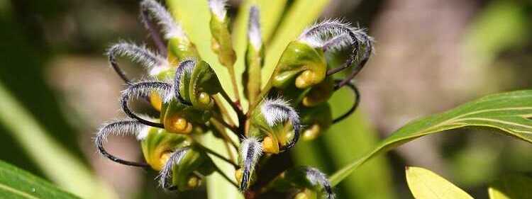 The intricately shaped flowers of the Grevillea venusta are one of its most distinguishing features. Also known as the Byfield spider flower or the Showy Grevillea, due to its unique blooms, the Grevillea venusta occurs natively in the Byfield area of Queensland. So taken by its appearance, it seems, was the botanist who first described it, Robert Brown, that he gave it the Latin name of venusta, which means “charming, lovely or graceful”.